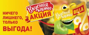 В супермаркетах Billa оформите специальную Вкусную карту и ежемесячно получайте выгодные предложения и скидки до 50% на сотни товаров