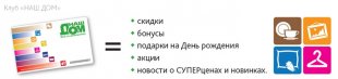 В магазинах Наш Дом при покупке от 1 500 руб. вы можете получить дисконтную карту и экономить от 3 до 10% на следующих покупках
