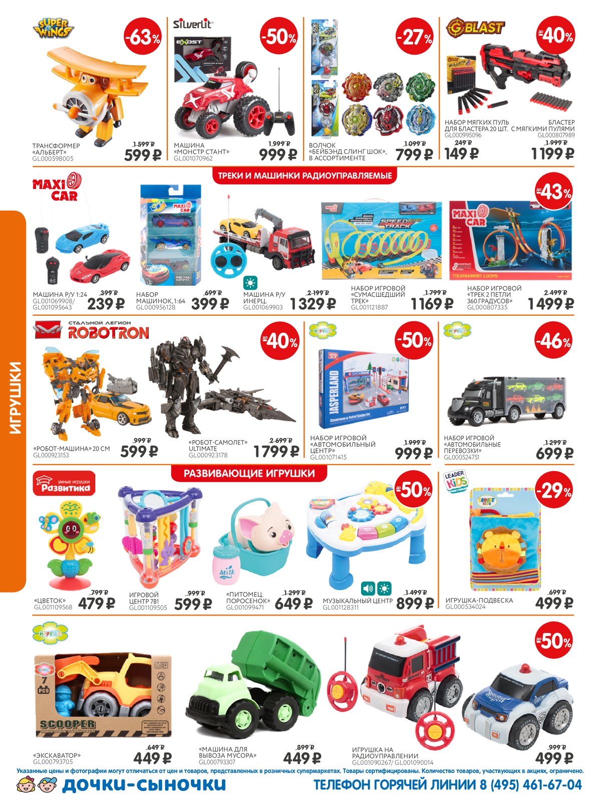 Каталог магазина Дочки Сыночки предлагает товары для детей всех возрастов – для новорожденных, ясельного, дошкольного и школьного возраста. Кроме этого, магазин Дочки Сыночки предлагает большой выбор продукции для беременных и кормящих мам. В каталоге представлено множество продукции от российских, украинских, польских, китайских, испанских, белорусских, французских, итальянских и других производителей, занимающих лидирующие позиции в своем сегменте.