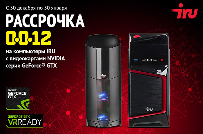 Популярные компьютеры на выгодных условиях! В период с 30 декабря 2016 по 30 января 2017 в магазинах Ситилинк действуют специальные условия кредитования при приобретении компьютеров IRU с видеокартами NVIDIA серии GeForce GTX.